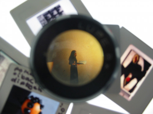 Image: Hannah O’Shea performing ‘A Litany for Women Artists’ and miscellaneous Women’s Art Library slides, Goldsmiths University, London.