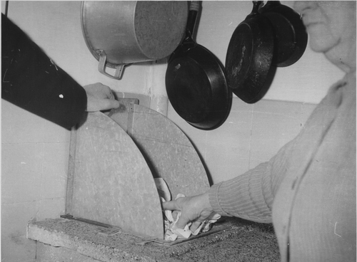 Image: A new garbage chute installed in the kitchens of the Justus van Effencomplex, 1961. Image courtest of Stadsarchief, Rotterdam.