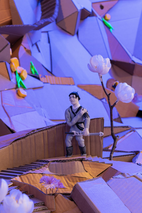 Muddling through misunderstandings of macroeconomics, Pension Planning begins with the daunting task of climbing a mountain. Approached through the D-I-Y decorative aesthetics of high-school art class, YouTube videos and kinetic cardboard crafts, the exhibition stands as a kind of visual slang, in which the symbolic, sacred, stereotyped, systematic and silly are blended together into a three-story diorama.